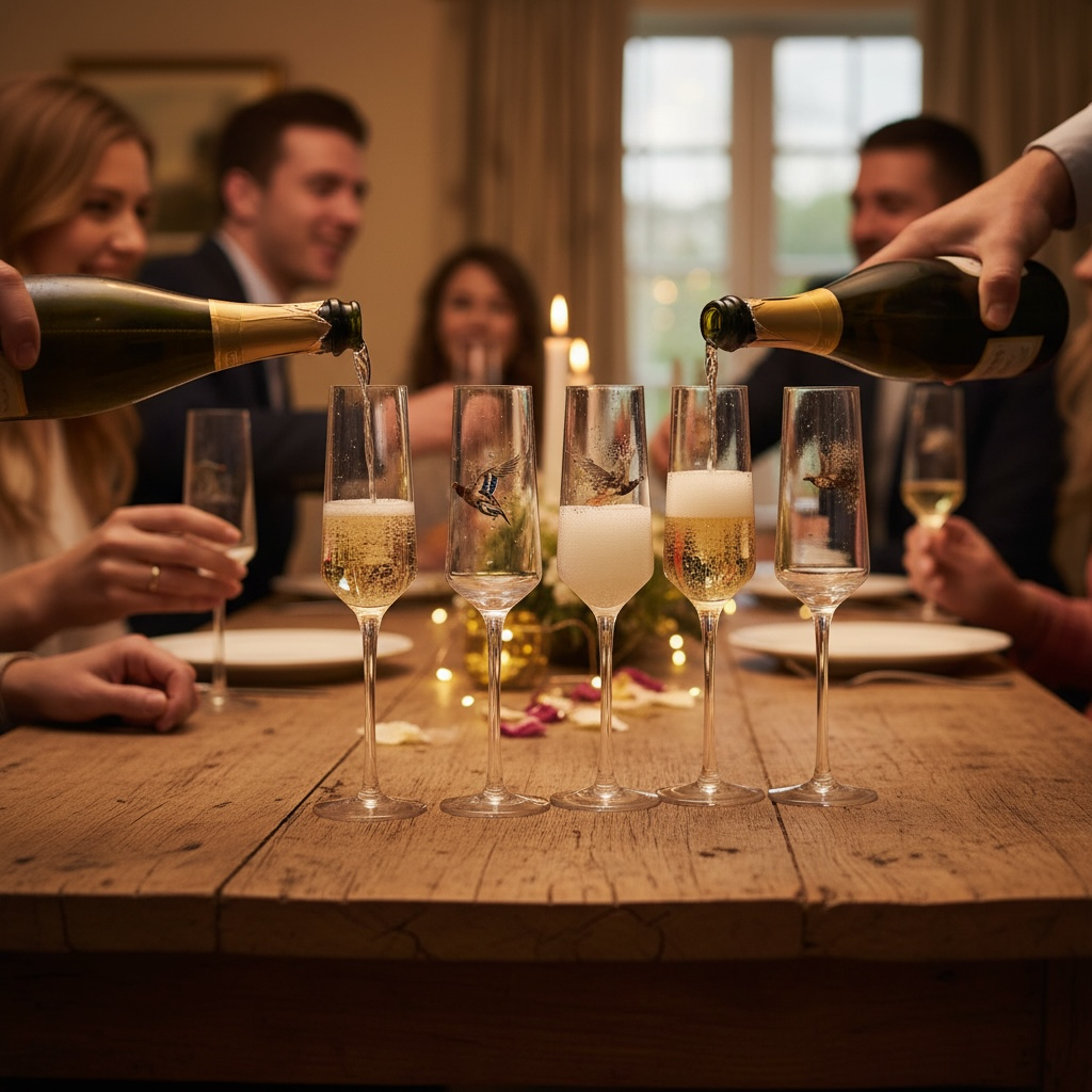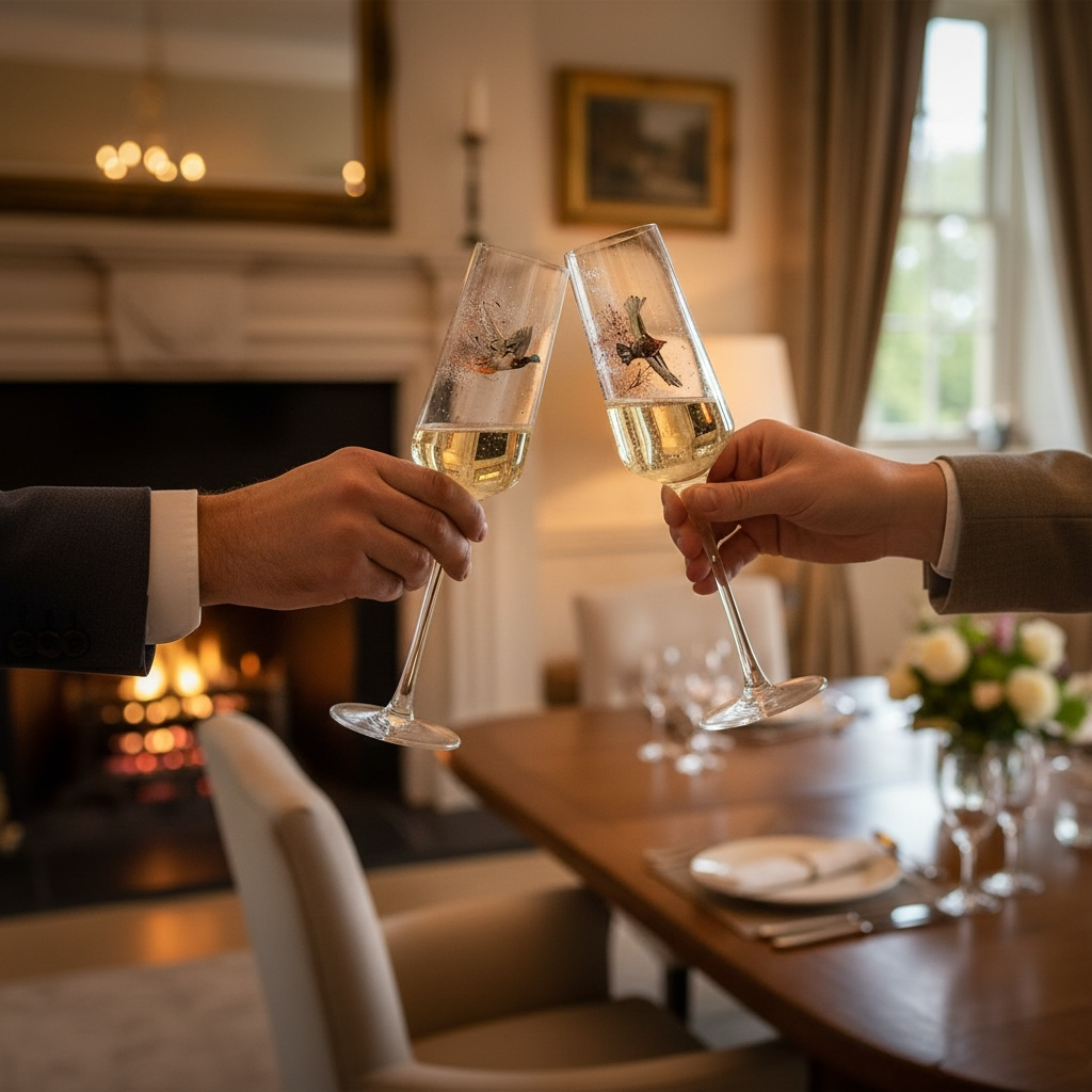 Set of 4 Game Bird Champagne Flutes (Hand painted)
